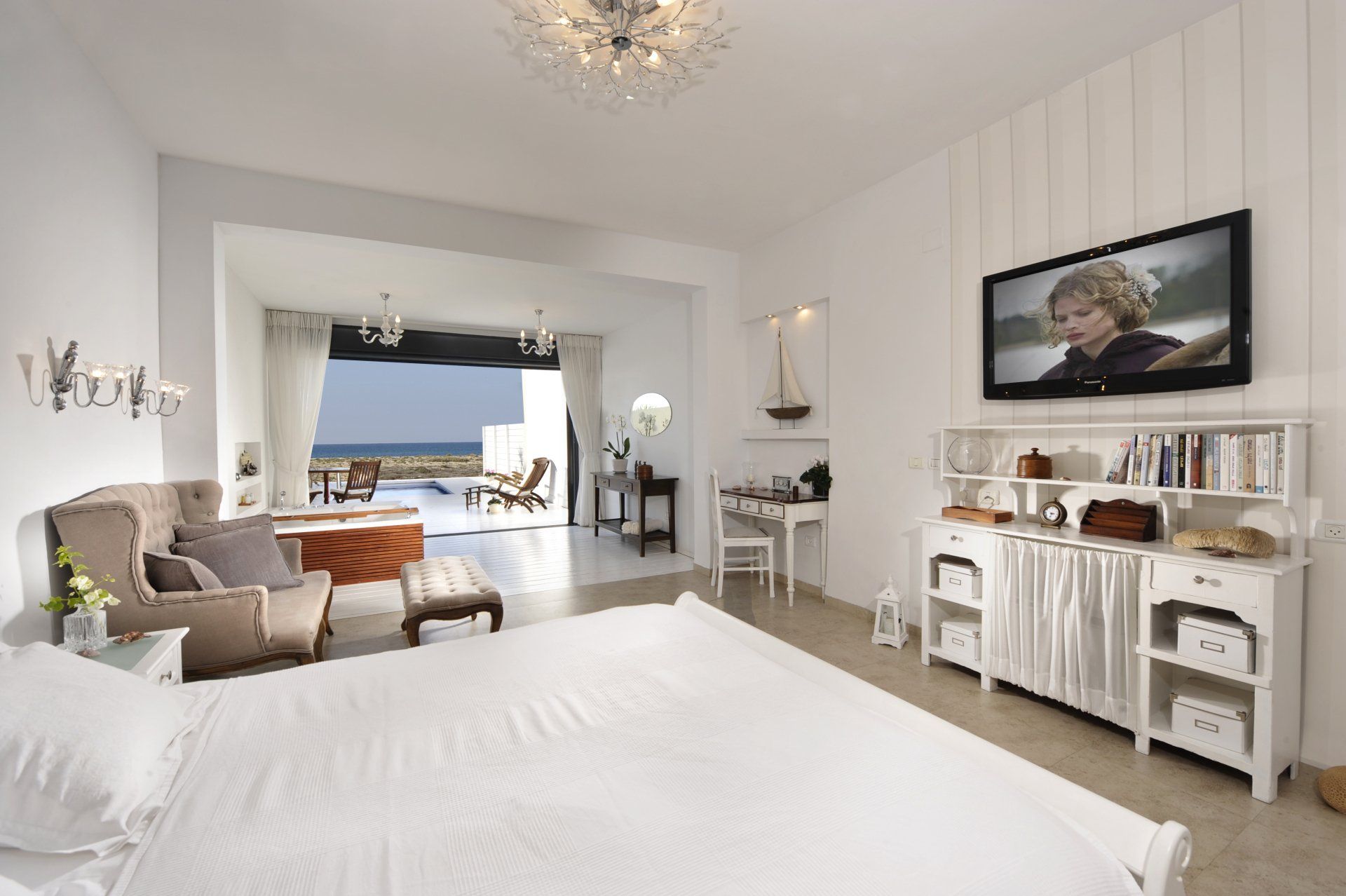 סוויטה צמודת קרקע הבנויה כחלל אחד. בקצה המערבי של הסוויטה ג'קוזי המשקיף לים, ומעבר לחלון בריכה מחוממת מוקפת דק ופינת ישיבה.